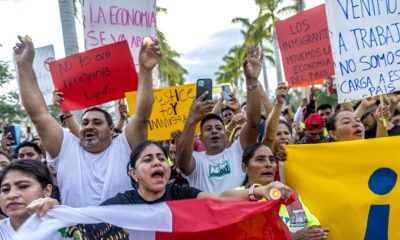 Manifestantes de distintos países de Latinoamérica protestaron este domingo en una concentración en la ciudad de Tampa, en la costa oeste de Florida, contra la ley...